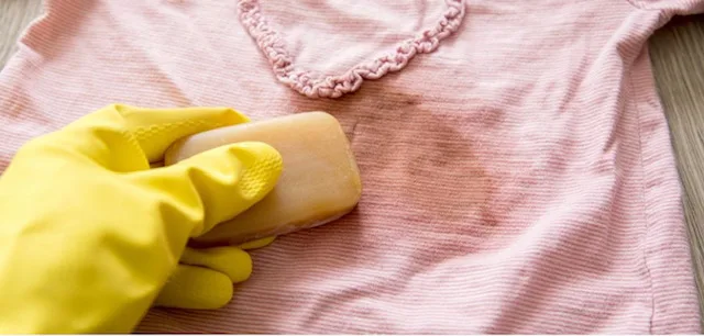 Kehre die Kleider auf links und lege den Fleck (auf links) unter dem Wasserhahn und lasse das kalte Wasser darauf fallen. Das ist wichtig um den Fleck schon mal von den Textilfasern zu lösen.